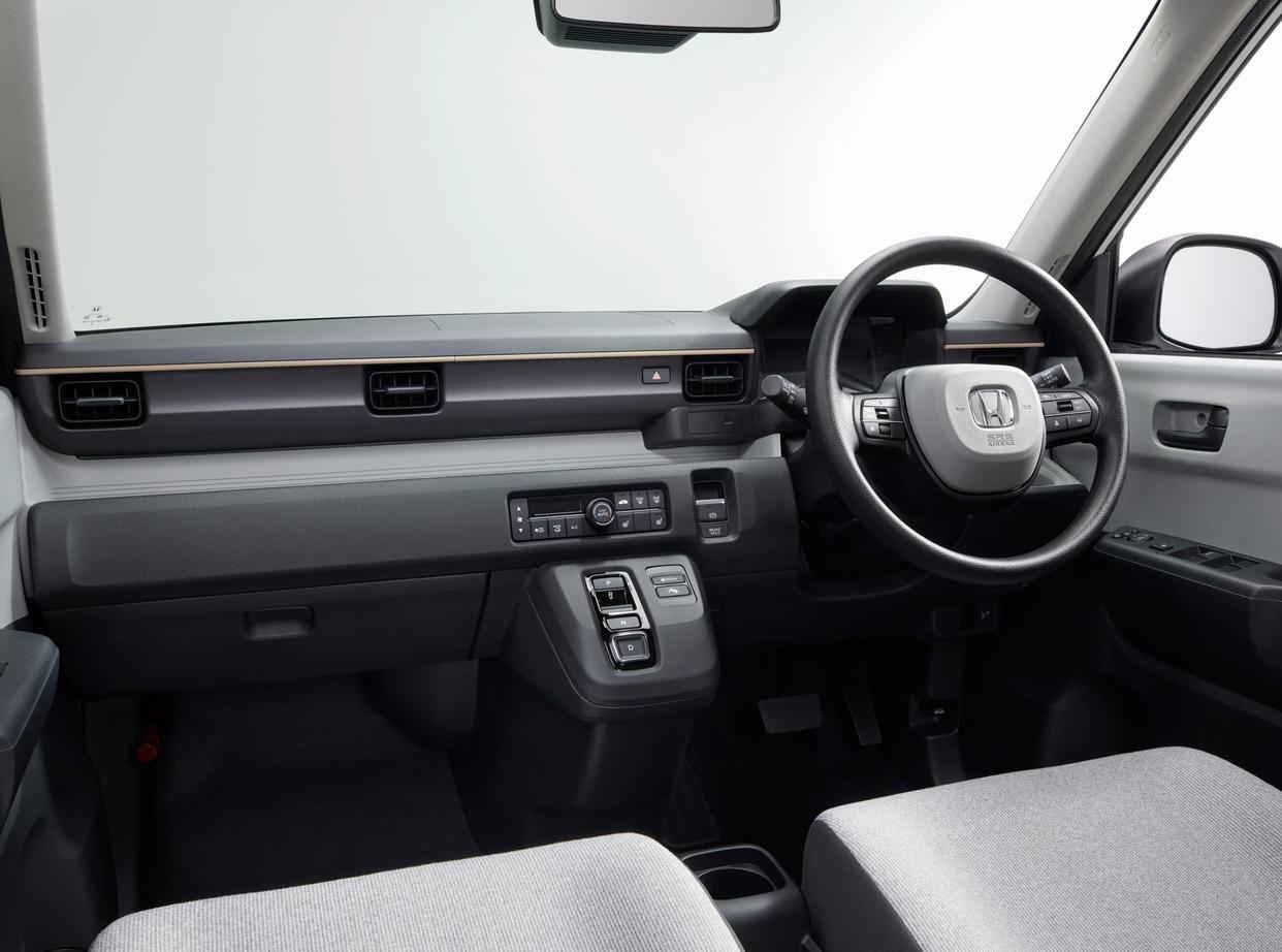 进入车内,本田N-One e Mugen的整体布局设计充分体现了日系车对空间利用和人性化考量的极致追求。环抱式的座舱配备了浅灰色植绒面料的铺陈,还加入了黑色碳纤维装饰面板的点缀,并带有造型复古的空调出风口设计。科技感方面,本田N-One e Mugen配备了全液晶彩色仪表,取消了传统的中控液晶大屏,取而代之的是车顶棚的投影仪,内置了Honda CONNECT智能导航娱乐系统,包括智能语音助手、倒车影像等,为驾驶者提供了更便捷的用车体验。车内配备了4个造型简约的沙发座椅,没有那么复杂的功能,便于维护,乘坐舒适感也同样出色。经典的本田方向盘搭配着按键式的换挡,也会带来更好的操控体验。
